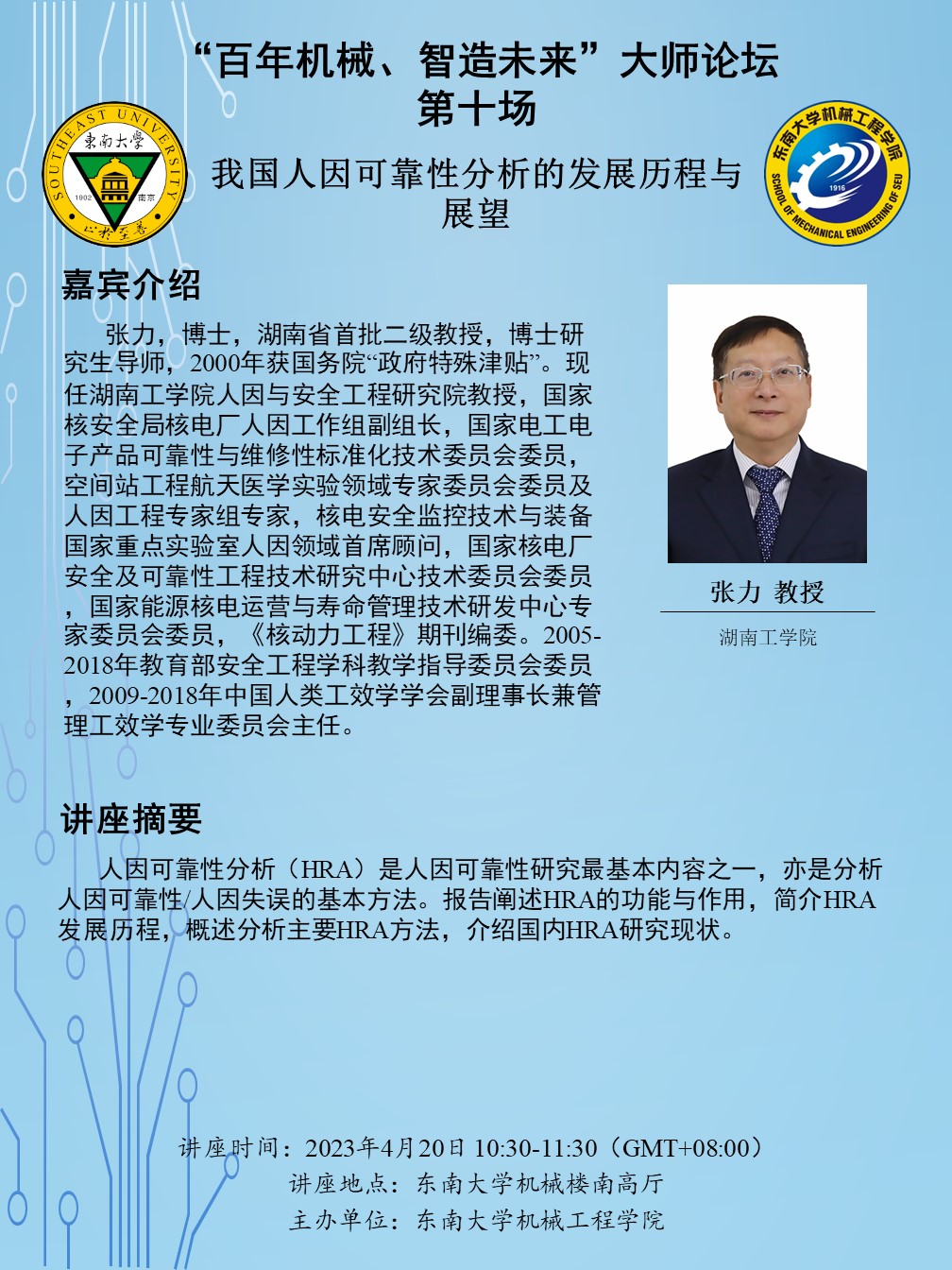 “百年机械、智造未来”大师论坛第十场:张力教授——我国人因可靠性分析的发展历程与展望